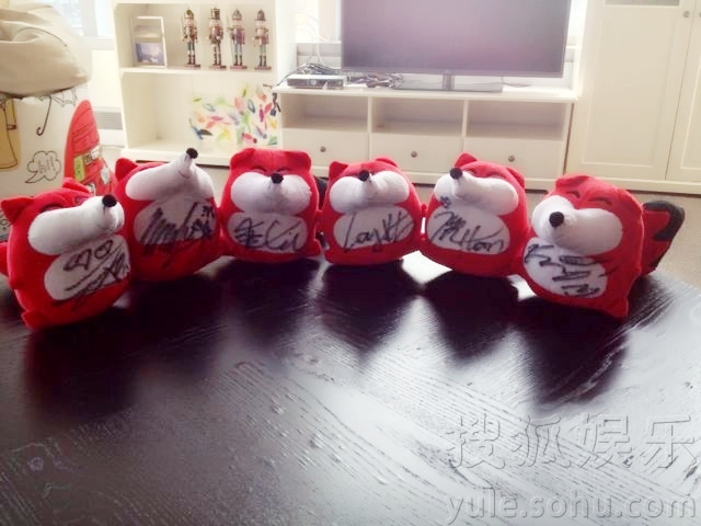 EXO-M成员签名小狐狸合影
