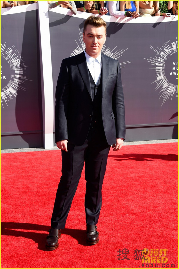搜狐娱乐讯 2014年8月25日,洛杉矶,当地时间24日,2014 MTV音乐大奖红毯:英国超新星Sam Smith西装亮相。