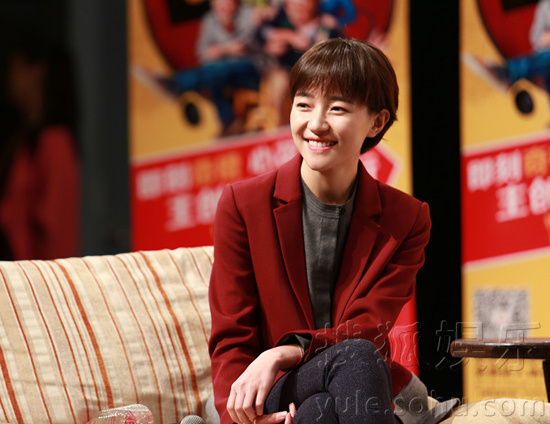 搜狐娱乐讯 9月18日晚,电影《心花路放》导演宁浩携焦俊艳等主创演员亲临浙江传媒大学与同学们见面。当天,焦俊艳以一身干练利落的赭红西装外套搭配深蓝牛仔裤亮相,尽显“潮男”范儿。有着“女孩脸汉子心”的焦俊艳还应景打趣到,“我不是女神,也不是女神经,头发剪短了是想挑战男演员!”