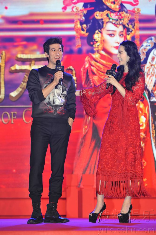 搜狐娱乐讯(李文婷/文 李楠/视频)大型古装电视剧《武则天传奇》即将于21号登录湖南卫视金鹰独播剧场。18号,该剧在京举办了发布会。主演范冰冰、张丰毅、李治廷、李晨、张钧甯、张庭、周海媚、张馨予等盛大亮相。有范爷的地方就不缺少话题。为宣传这部心血之作,当天,范冰冰大开外挂,从脱鞋上称量体重粉碎60公斤传闻,到被张丰毅公主抱,到与李晨互撕名牌,再到与绯闻男友李治廷有爱合唱,整场发布会可以说是“全程无尿点”,范爷好拼么么哒!