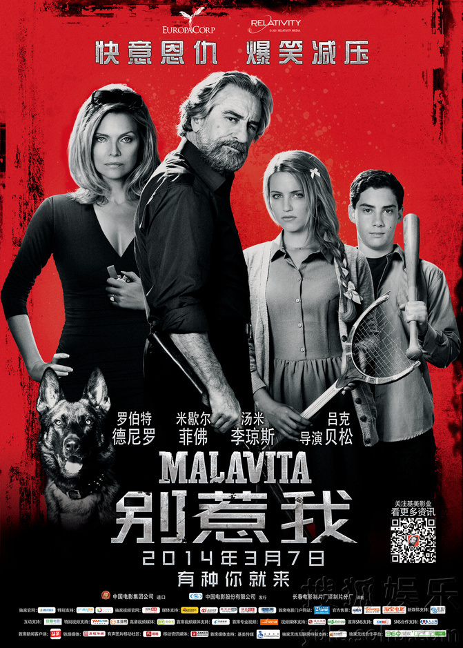 搜狐娱乐讯 由基美影业与法国欧罗巴电影公司联合出品,法国导演吕克-贝松自编自导、马丁-斯科塞斯监制、根据托尼诺-贝纳基斯塔的小说《Badfellas》改编的带有犯罪、惊悚等多类元素的暴力喜剧《别惹我》,将于2014年3月7日登陆全国院线。该片讲述了一个黑手党家庭接受了法国的证人保护计划迁居到诺曼底,开始努力适应新的生活方式。但黑帮家族布雷克一家人个个霸气依旧,屡屡露出火爆本性,习惯以黑帮方式解决问题的黑帮家族不可避免的引起了人们的注意,看似惬意舒适的隐居生活危机四伏。
