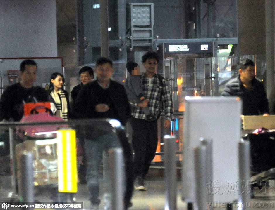 王学兵抱萌娃与妻子同亮相 机场大秀恩爱